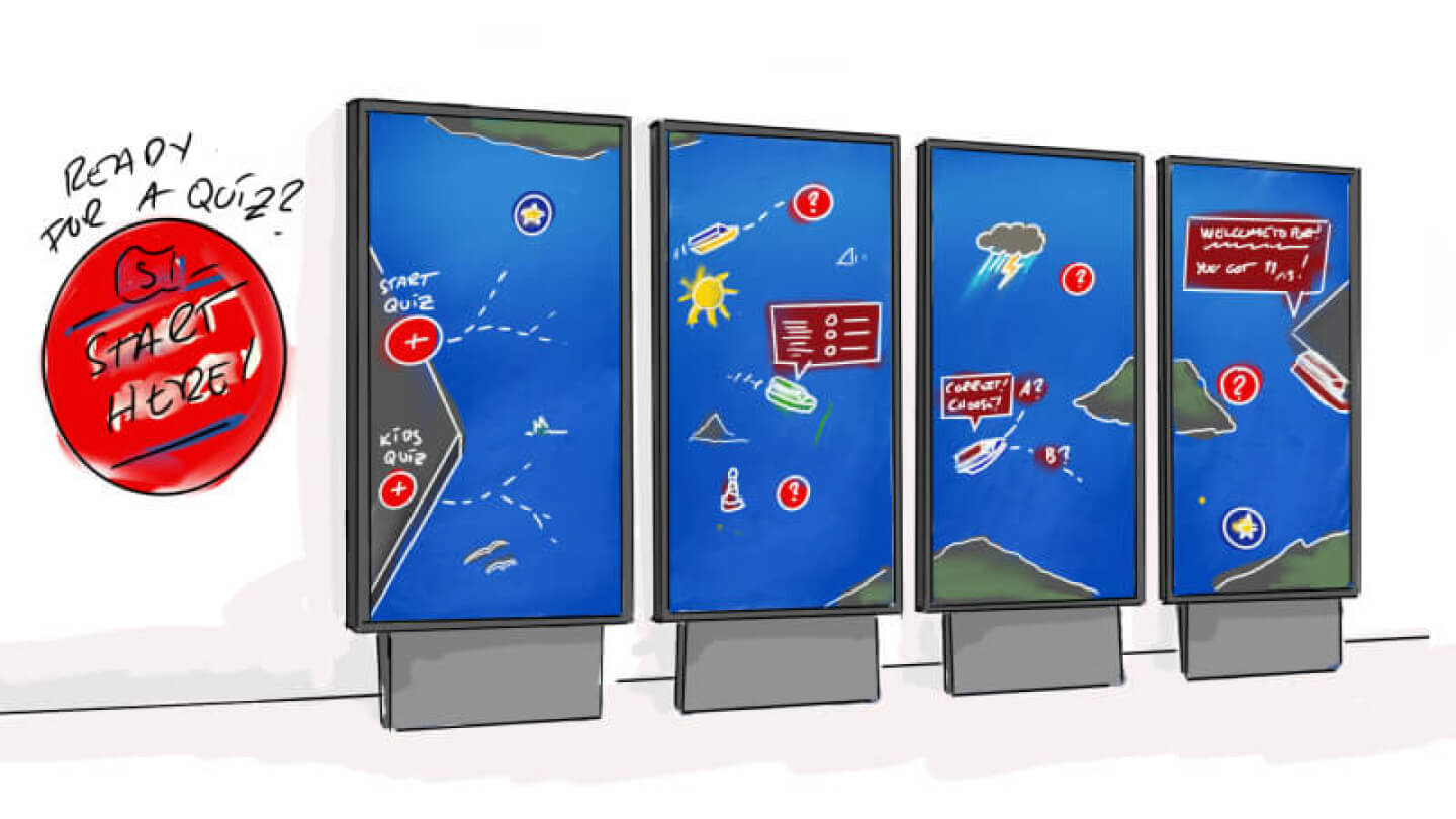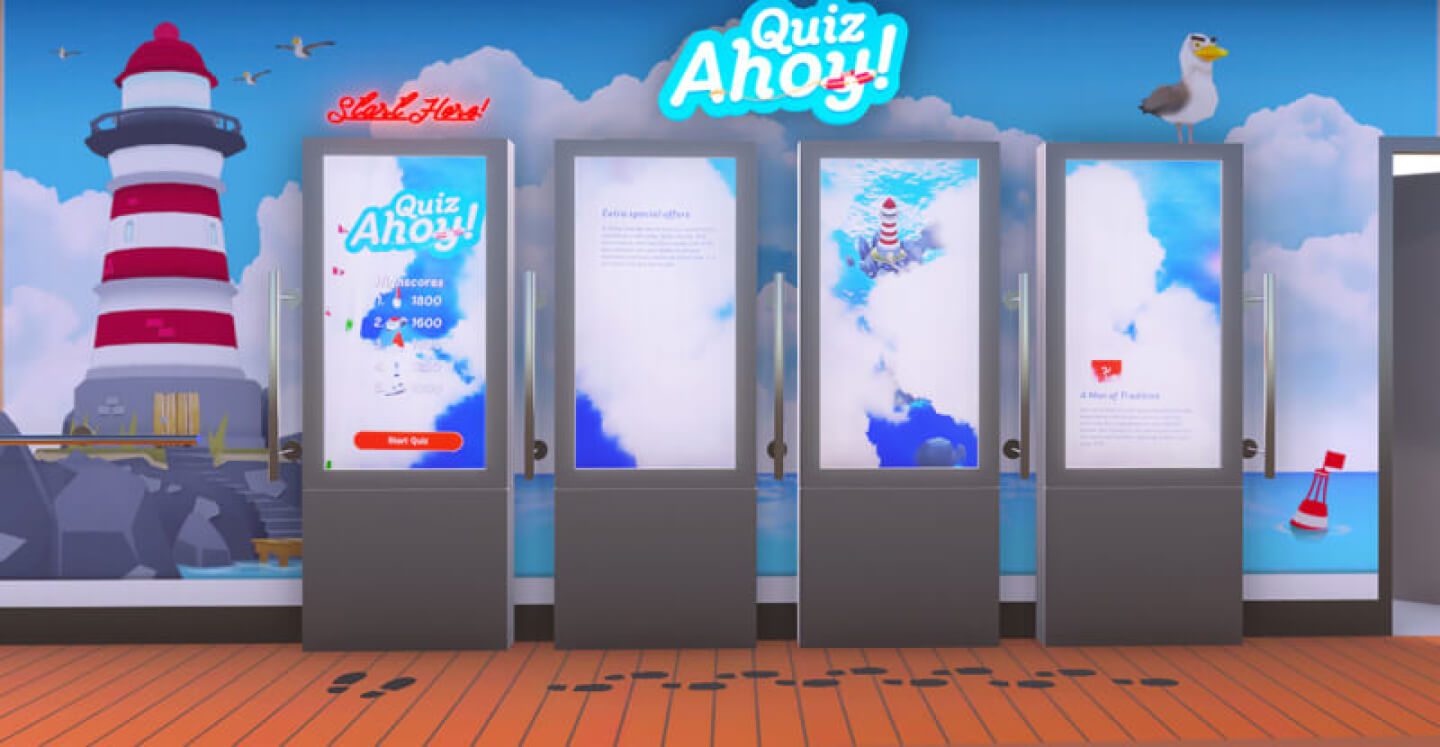 Our answer? Quiz Ahoy!, a fun, interactive quiz game that passengers could enjoy together during their trip. The game combined trivia questions with playful sea themed visuals, encouraging families to compete in teams and learn new things while having a great time together.