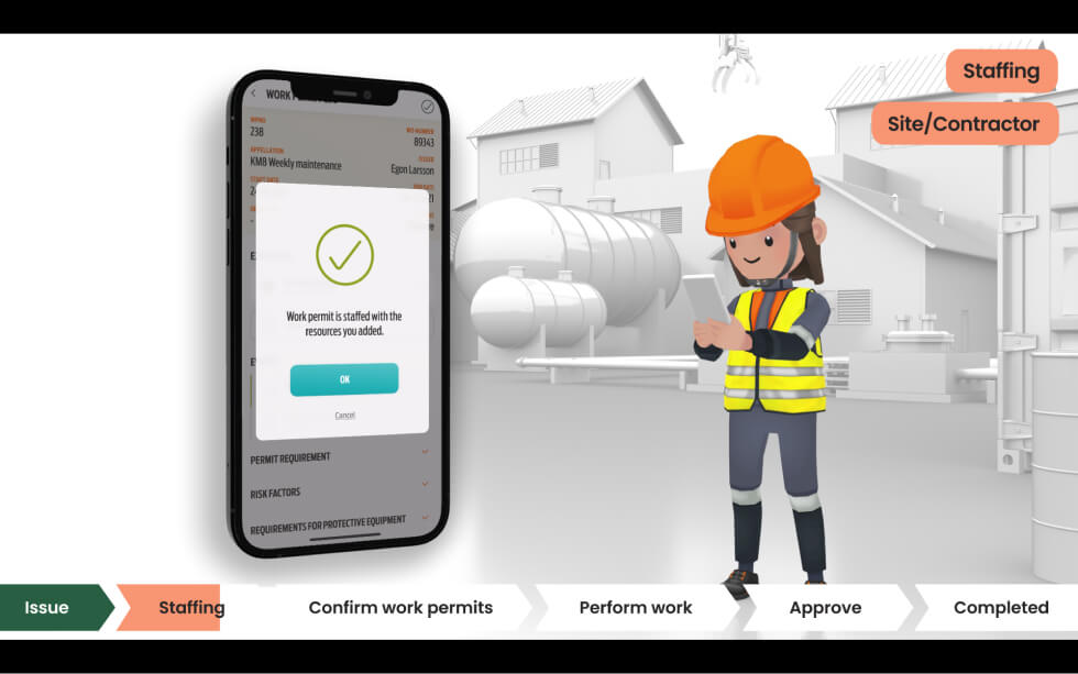 Animationer som fungerar som pedagogiska vägvisare vilket förenklar säkerhetsinstruktioner och gör informationen mer engagerande. Ökar både igenkänningen och användarvänligheten i SSG On site.